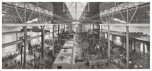 Innenansicht einer Montagehalle der Baggerbauanstalt