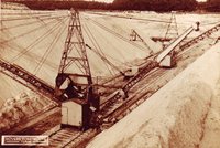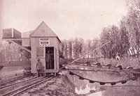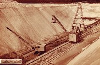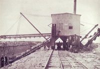 Dampfbetriebener Doppeleimerkettenbagger Lehmabbau bis 5m Tiefe Sandabbau bis 4,5m Höhe Der Sand wird über ein Förderband direkt in die Lehmgrube transportiert Leistung bis 35m3/Stunde |
